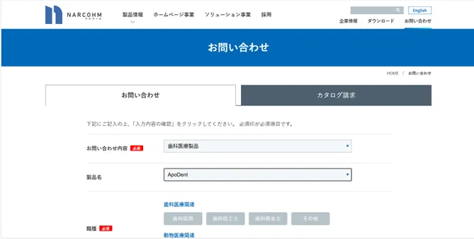 製品名【ApoDent】を選択しご希望の日時等を登録の上、お申し込みください。営業担当よりご連絡いたします。