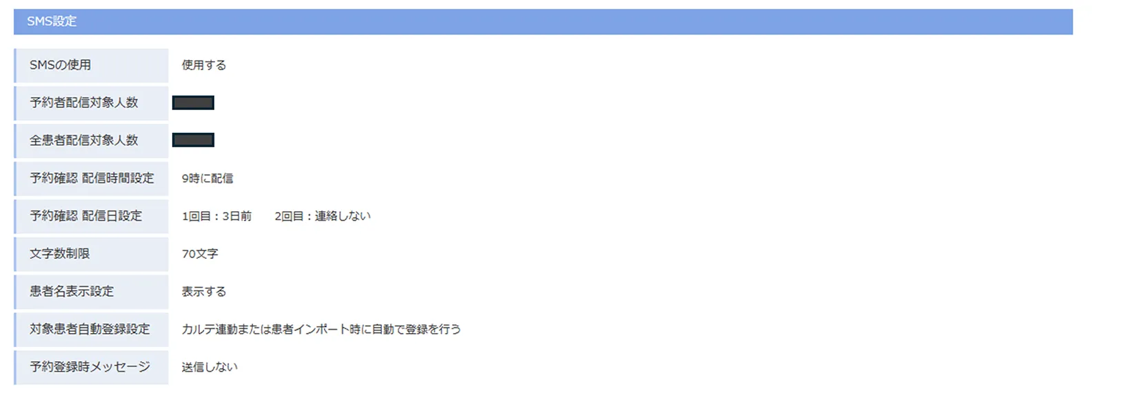 携帯電話の番号が登録されていれば、患者様側での操作は必要なく送信対象にすることができます。