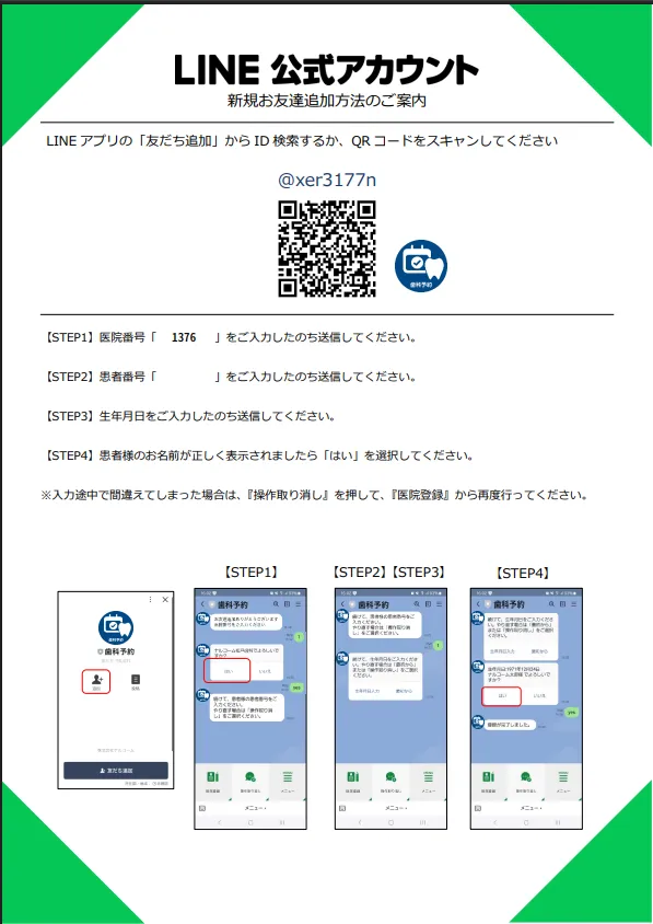 1.サービスを開始後、患者さんにLINEの友達追加を案内してください。