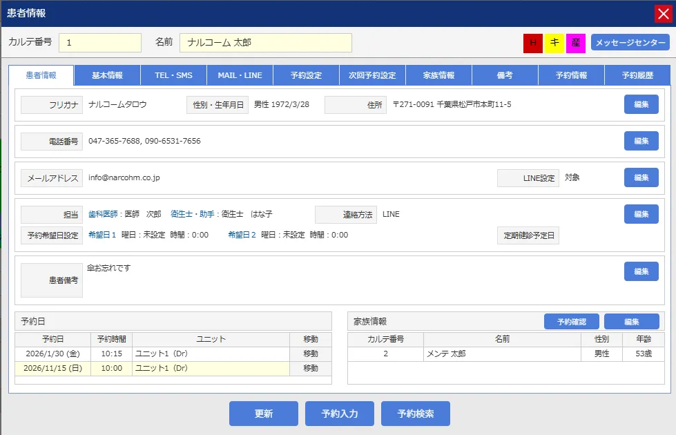 LINE送信対象の方が次回予約を取るとアイコンがつき、予約確認のメッセージが自動配信されます。