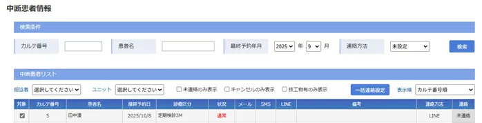 中断患者さんを検索できますか?