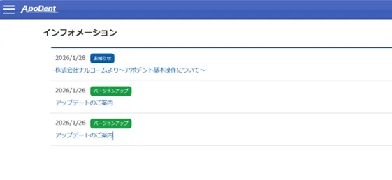 - アポデントインフォメーションよりお知らせしています。