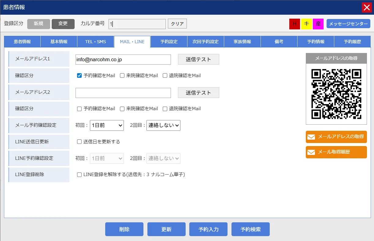 患者様によって配信する日程を変えたい場合は、患者情報から変更ができます。