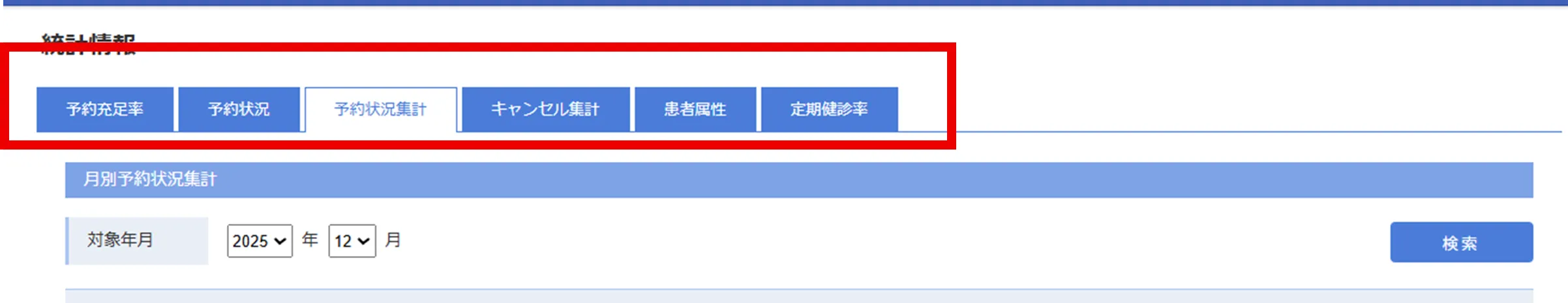 統計情報では月単位、年単位で様々な項目の人数をご覧いただけます。